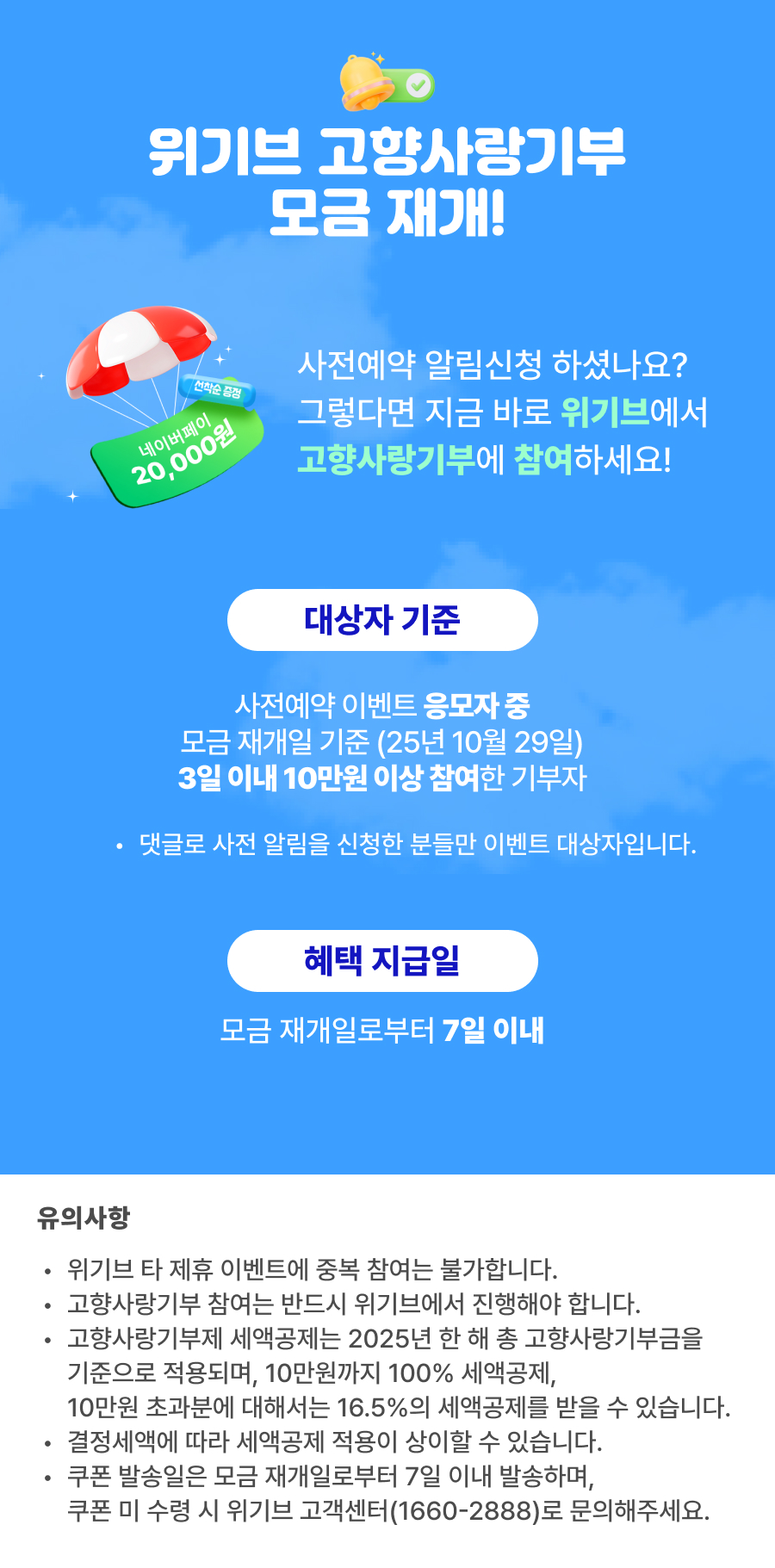 - [위기브] 고향사랑기부 사전 예약 이벤트
