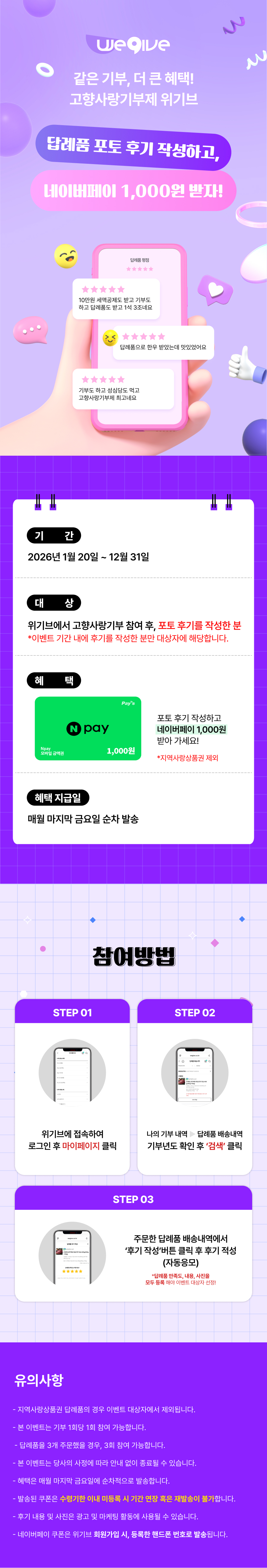 - 답례품 포토 후기 작성하고, 네이버페이 1,000원 받자!