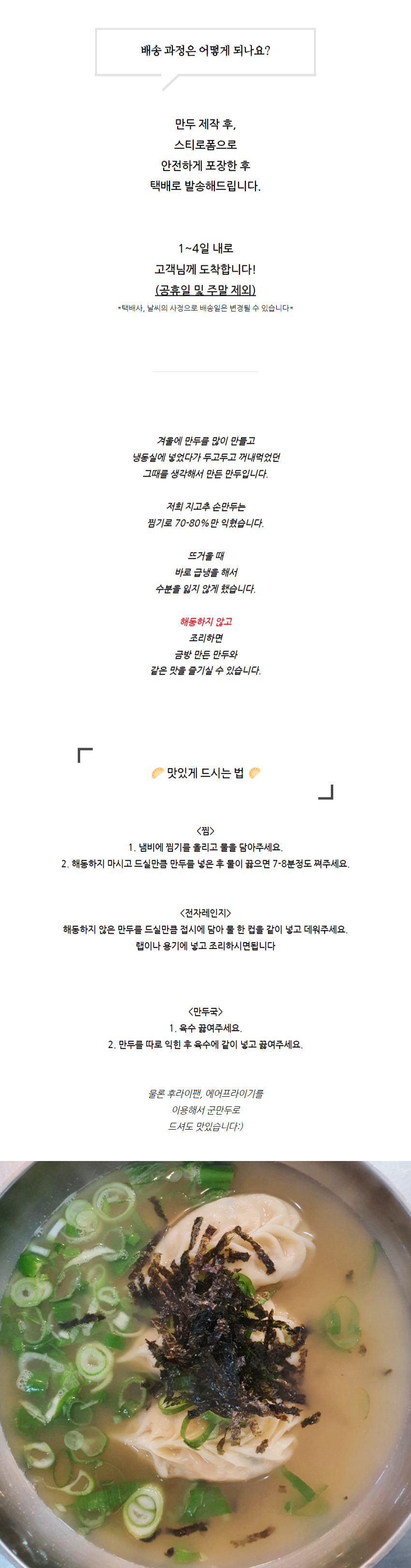 | 포장단위별 내용물의 용량(중량), 수량 | 만두 10개씩 3팩, 약 1.8kg |