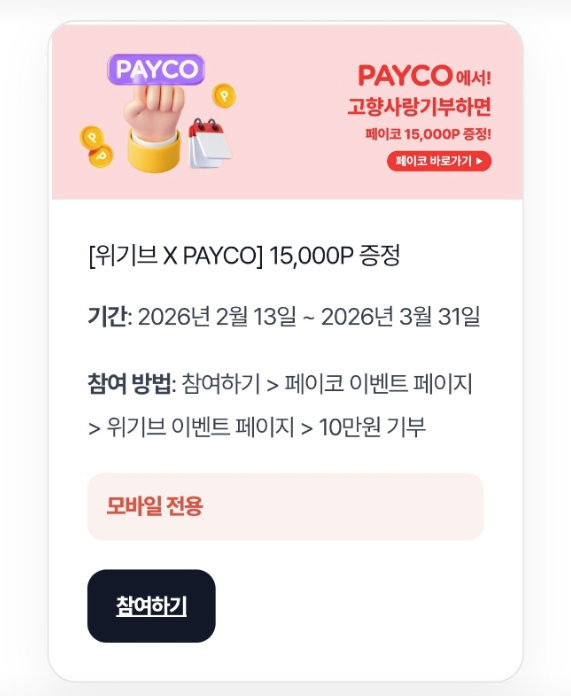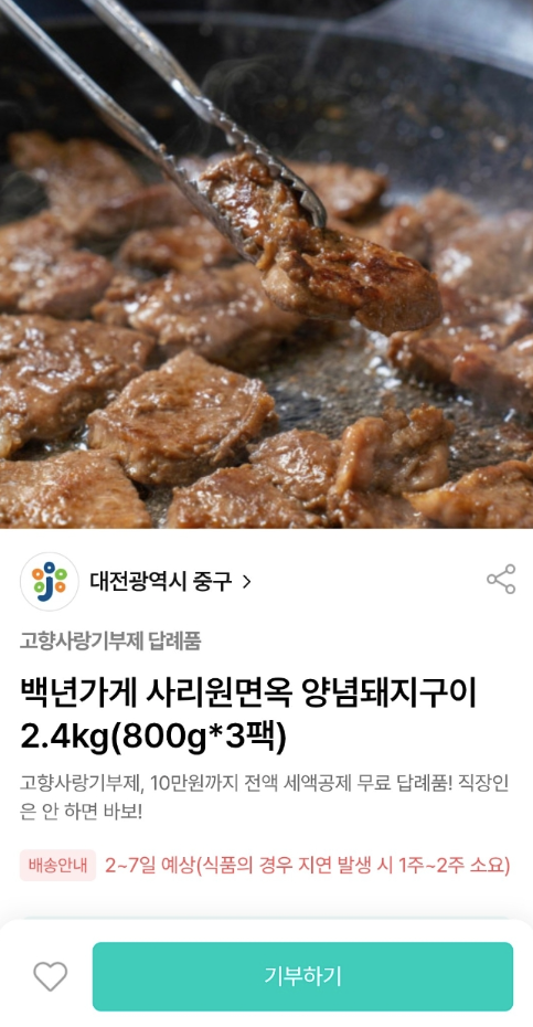원본 보러가기 ▶ 위기브 고향사랑기부제 세액공제 및 양념돼지구이 답례품(최대 14만 5천원 혜택)