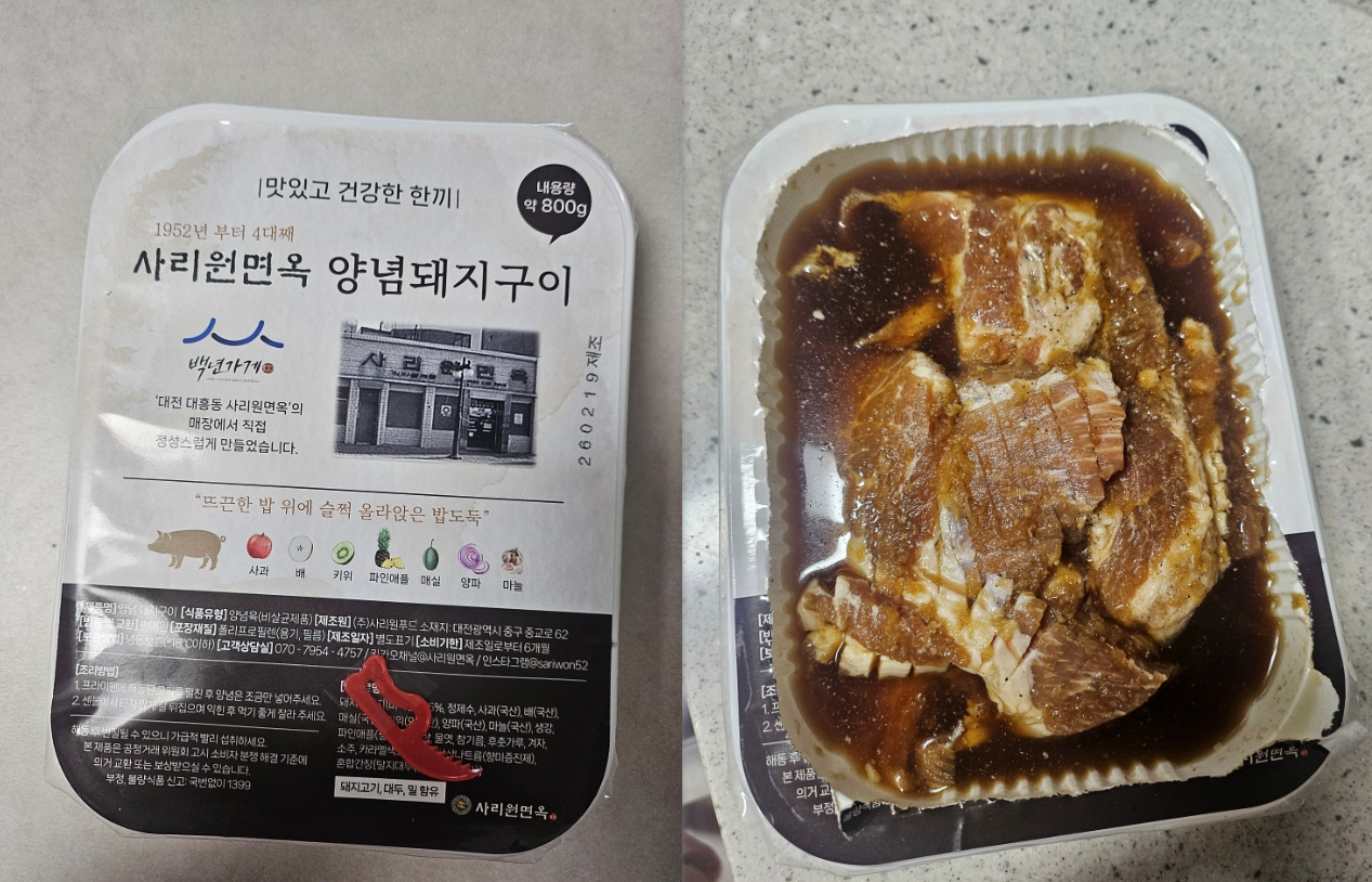 포장을 뜯으면 양념에 촉촉하게 잠겨있는 갈비 등장~