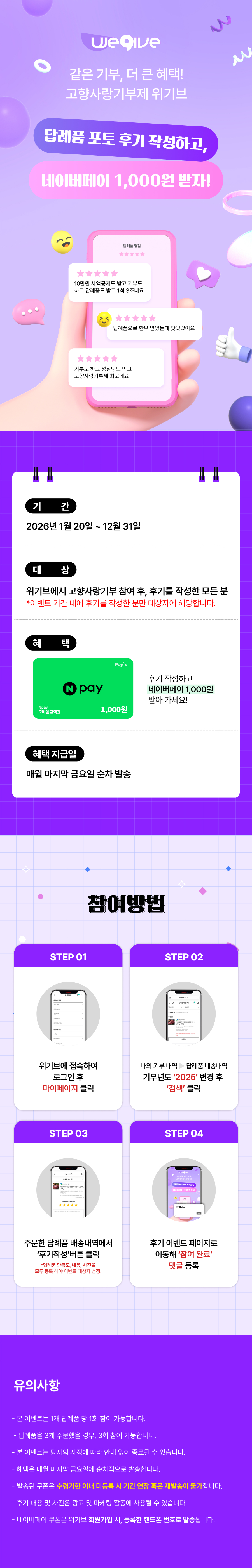 - 답례품 포토 후기 작성하고, 네이버페이 1,000원 받자!