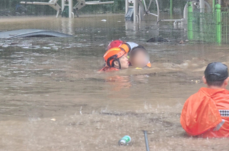 “지하에 물이 차올라서 아이를 안고 뛰쳐나왔어요”
