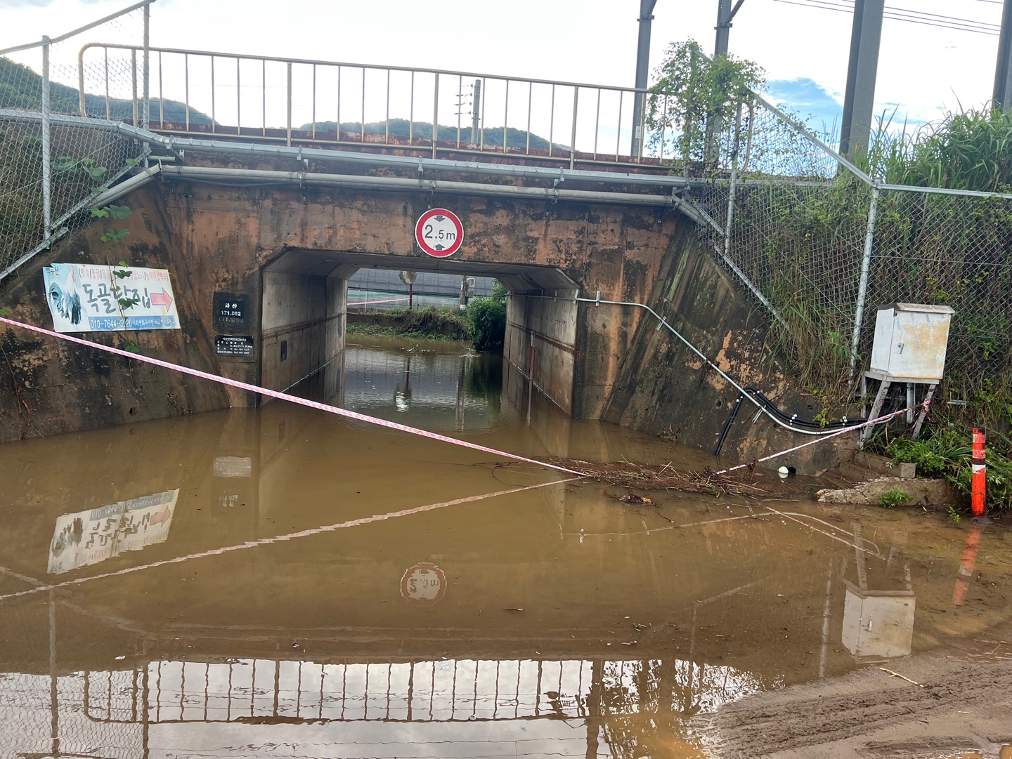 ▲ 침수로 인해 출입금지된 도로 모습 (©광주 광산구)