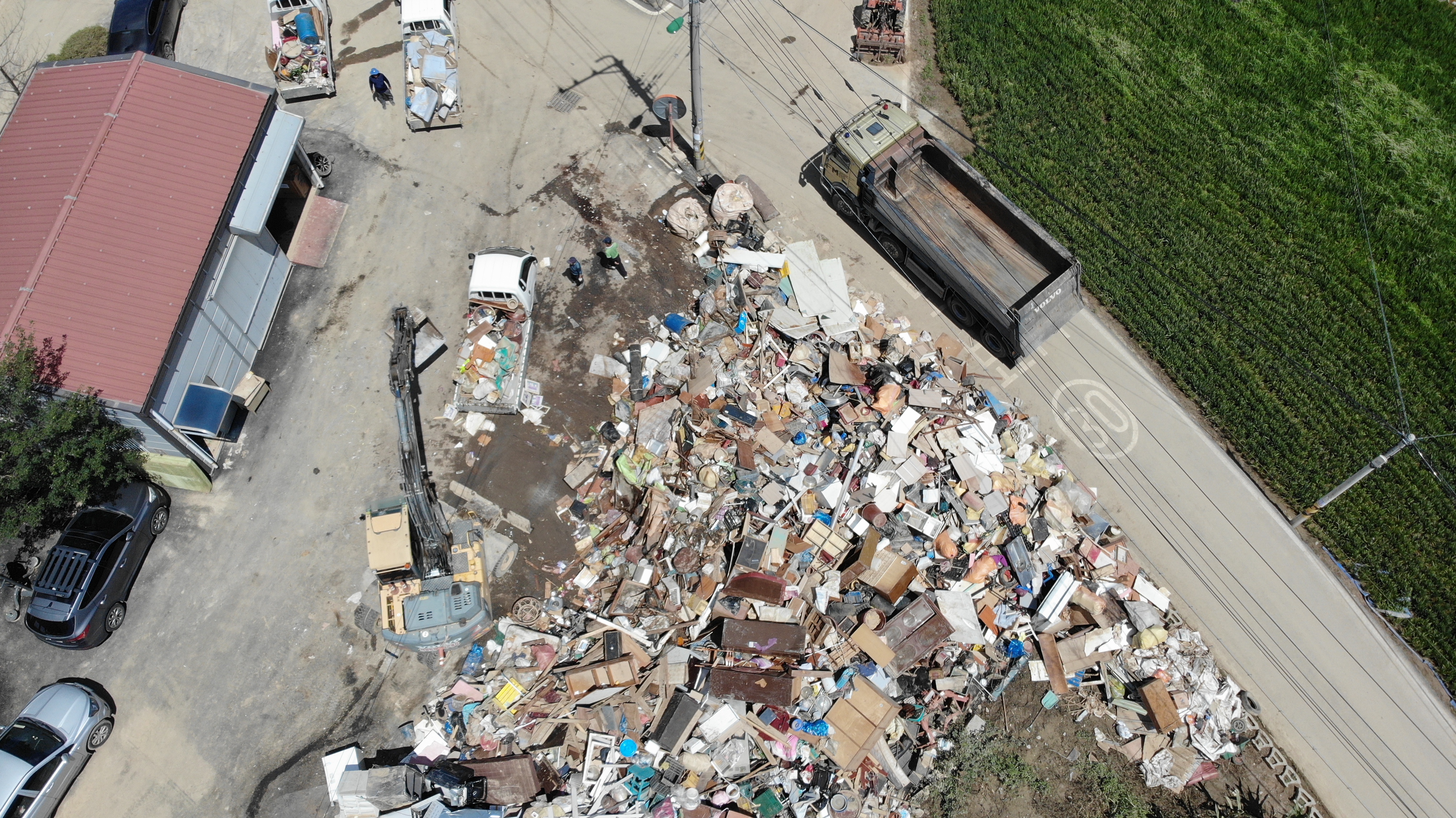 ▲ 폭우 피해를 복구하는 예산군청 관계자들과 주민들의 모습 (© 충남 예산군)