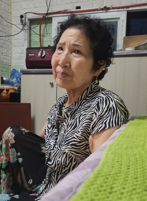 방 한쪽에 앉아 계신 강금순 어르신(77세).