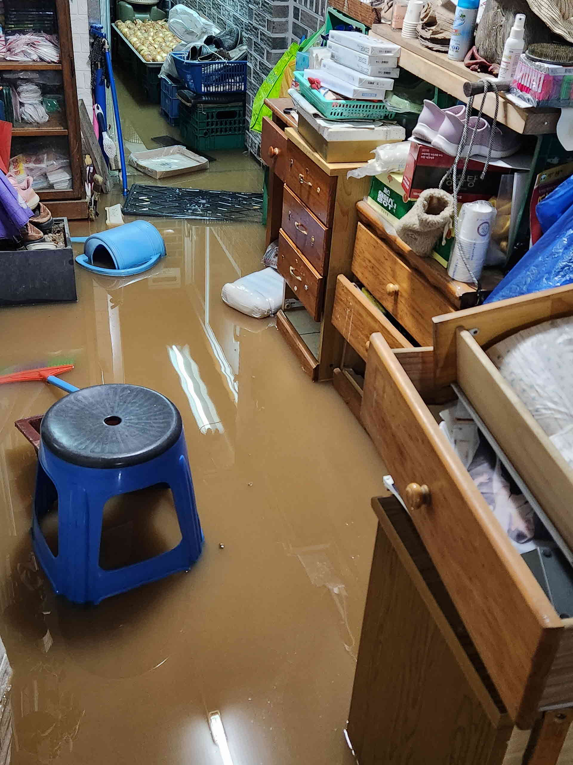 ▲ 빗물에 잠긴 집안 풍경 (ⓒ 서천군청)