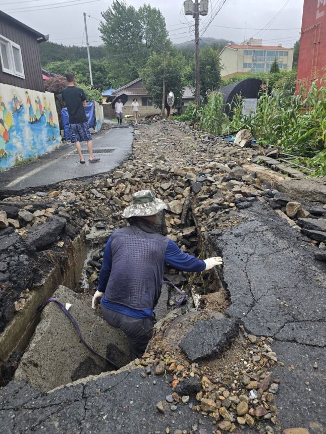 ▲ 무너진 도로 복구 현장 (ⓒ 서천군청)