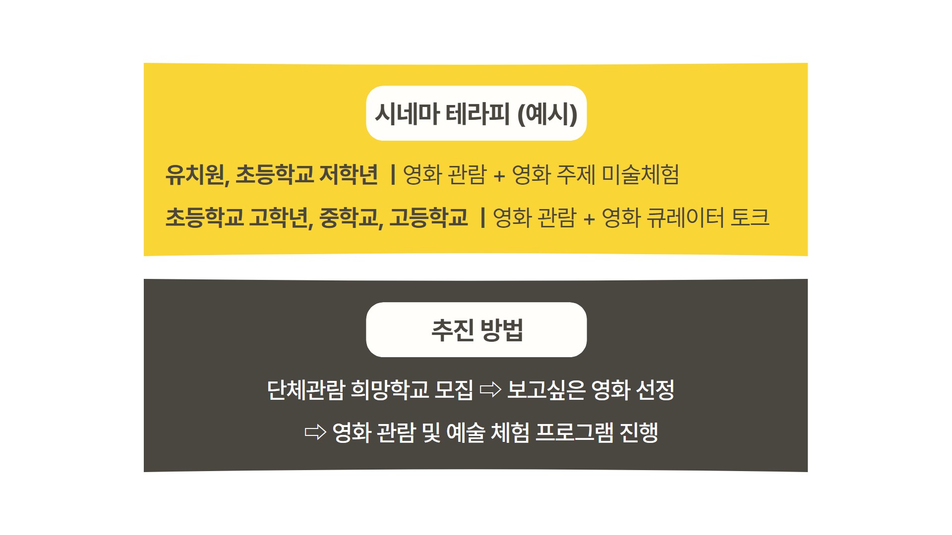 영화를 ‘보고 끝내는 경험’이 아니라 이야기로 이어지는 문화 경험으로 만들기 위해서는 이를 뒷받침할 프로그램이 필요합니다.
