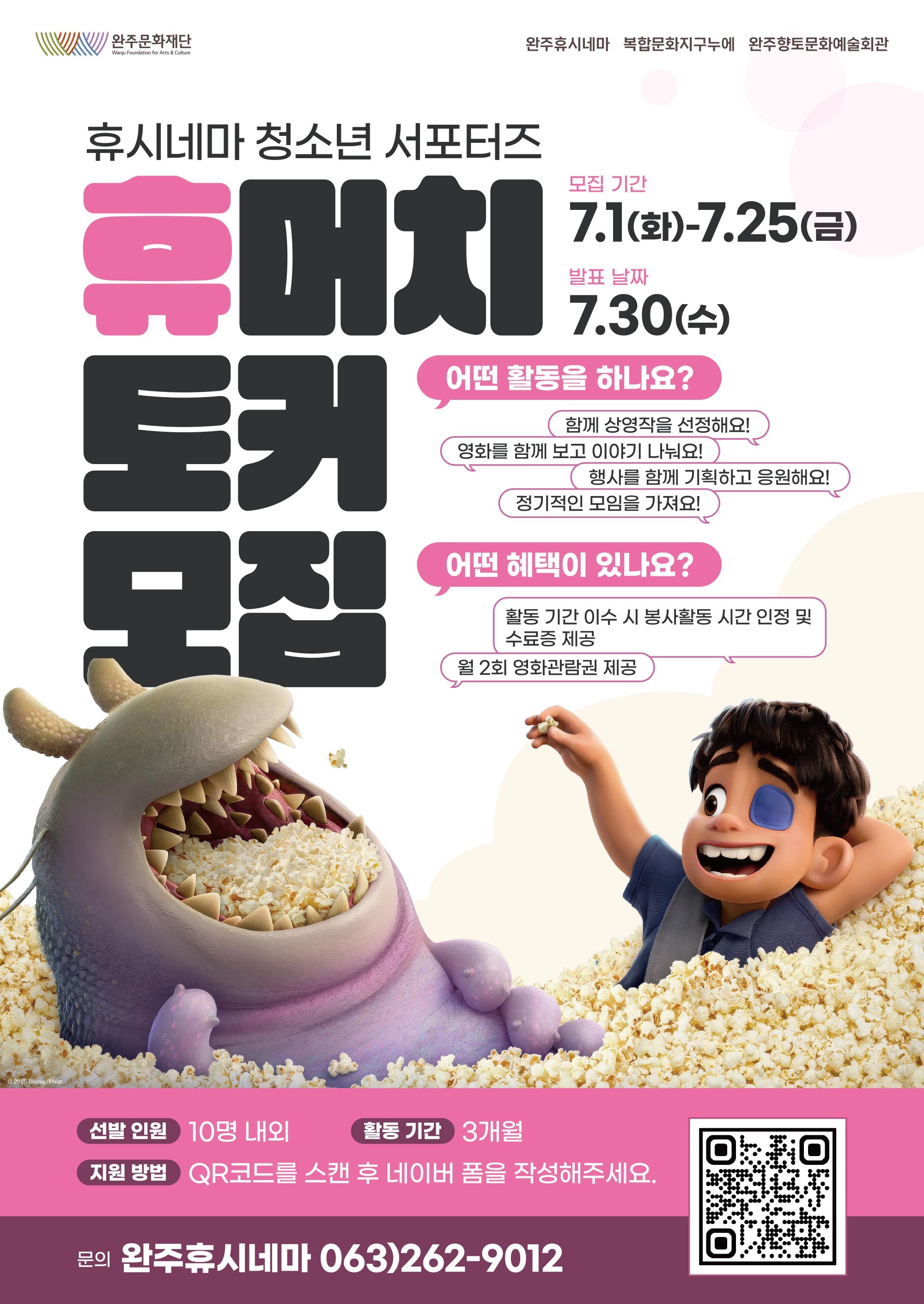 ‘청소년들이 지속적이고 주체적으로 영상예술 활동에 참여하며 성장할 수 있도록, ‘휴시네마 청소년 서포터즈’와 연계해 문화 경험이 일상으로 이어지도록 할 계획입니다.