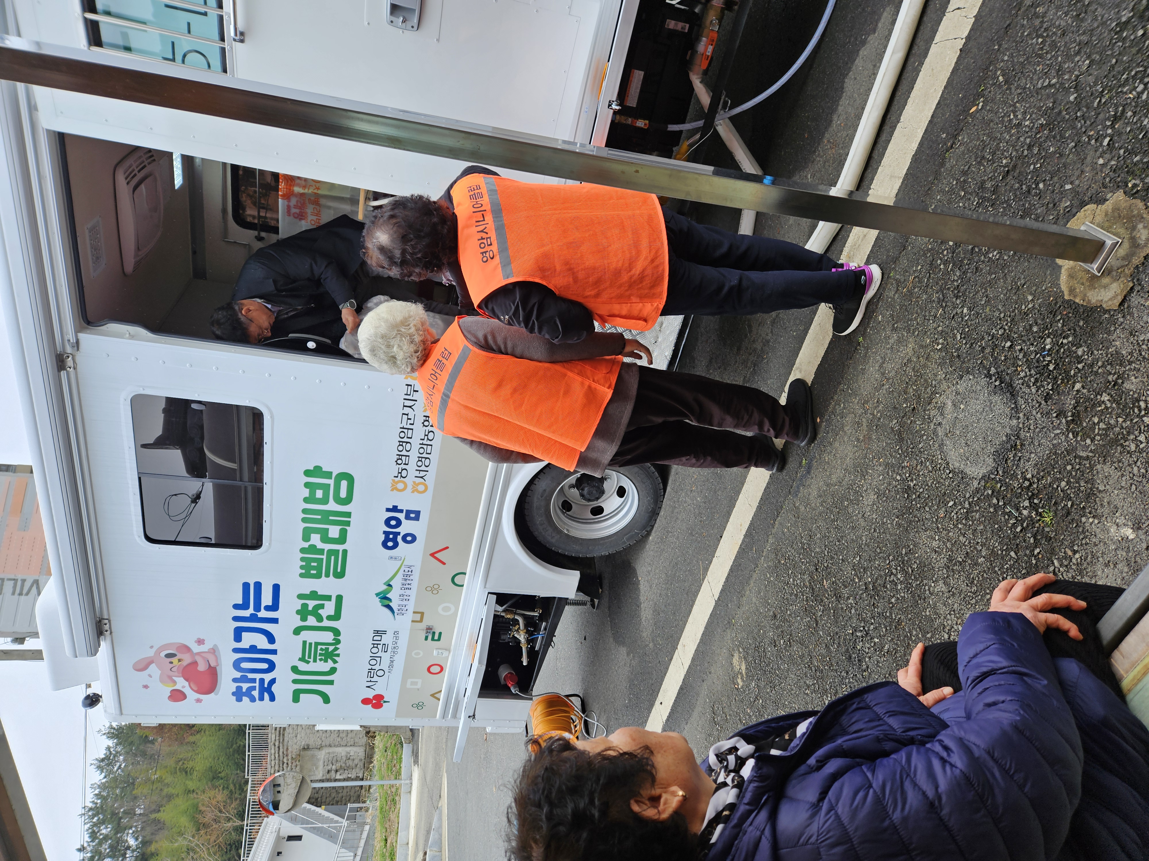 이동빨래방 차량은 주 3회 읍·면을 순회하며 어르신들이 계신 곳으로 직접 찾아갑니다. 2.5톤과 5톤, 두 대의 차량이 번갈아 움직이며 보다 많은 마을을 안정적으로 방문합니다.