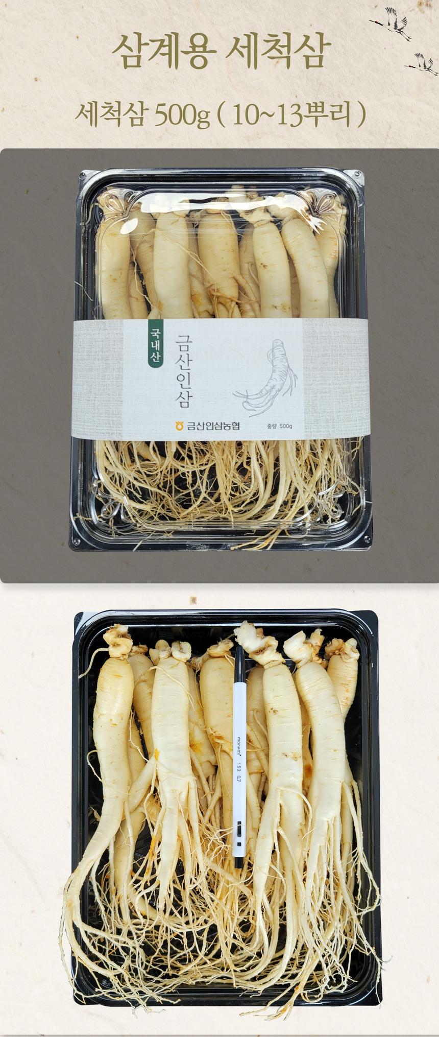 | 품목 또는 명칭 | 삼계용 세척수삼 500g |