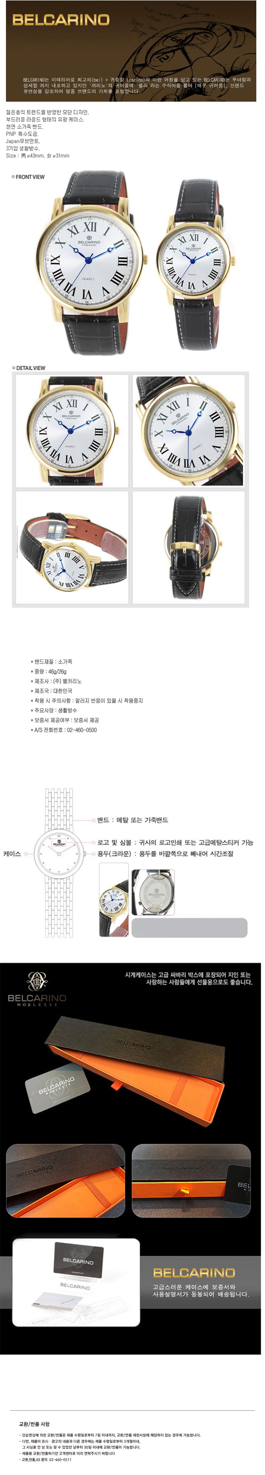 벨카리노 금장화이트 원형 손목시계(BC6100G M/F)