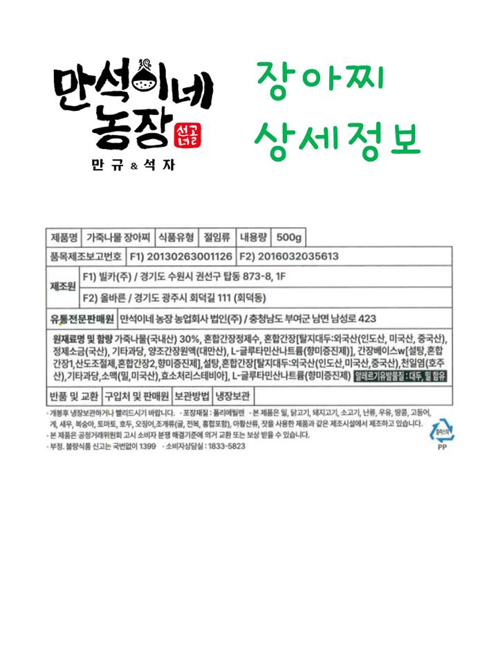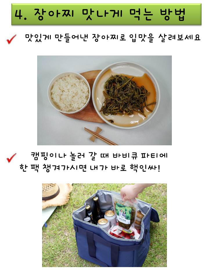 | 포장단위별 내용물의 용량(중량), 수량 | 장아찌 1kg |