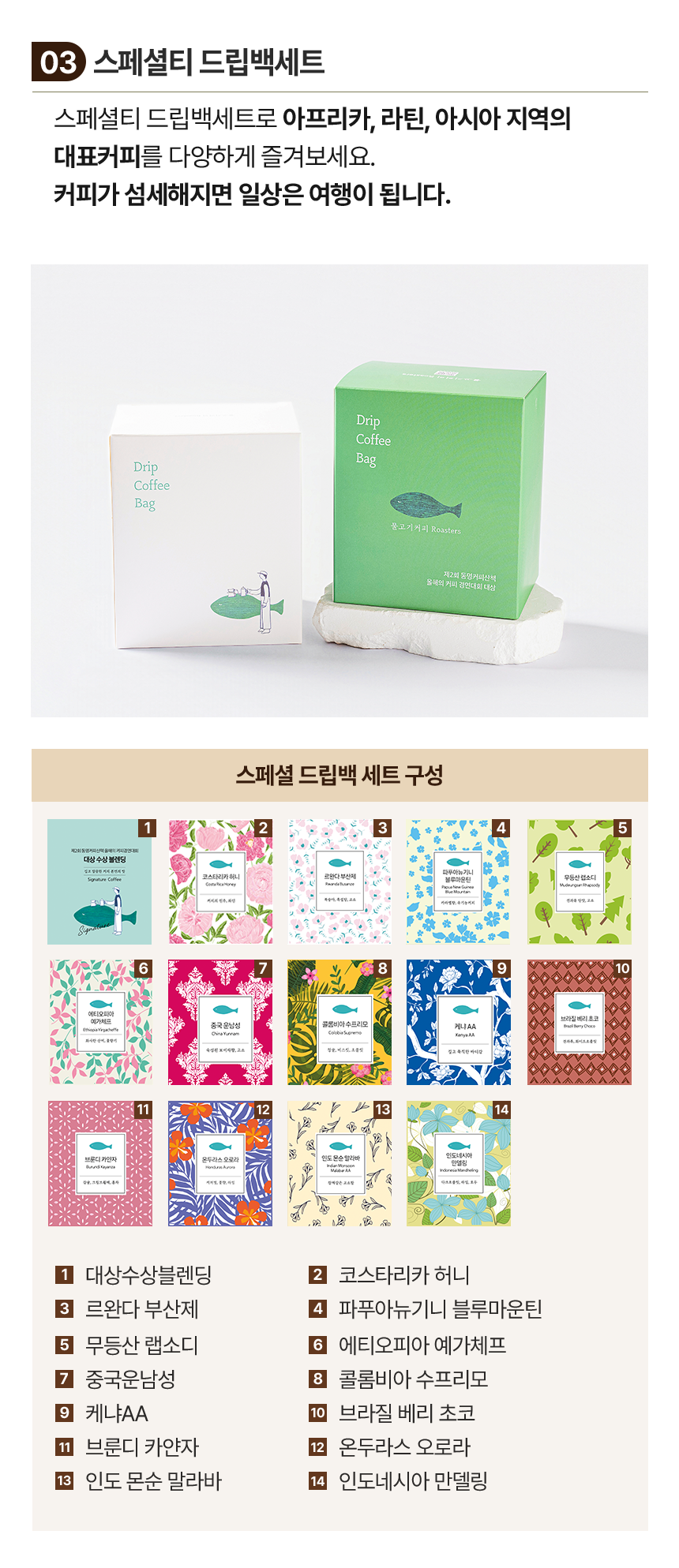 | 제품명 | 게이샤 드립백 세트 14봉 |