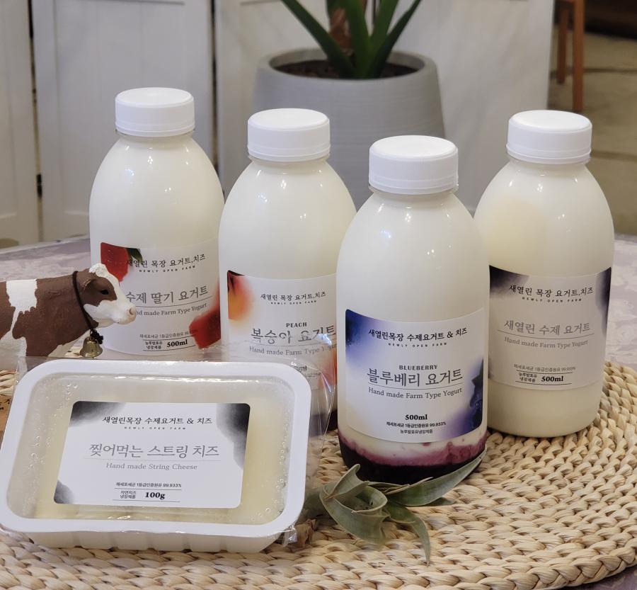 요거트 (플레인, 딸기, 복숭아, 블루베리) 180ml X 4 , 할루미치즈 200g X 1 , 스트링치즈 100g X 1
