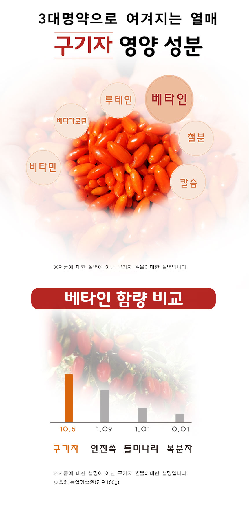 원재료명 (「농수산물의 원산지 표시 등에 관한 법률」에 따른 원산지 표시 포함) 및 함량(원재료 함량 표시대상 식품에 한함) 청양유기농구기자열매 100%