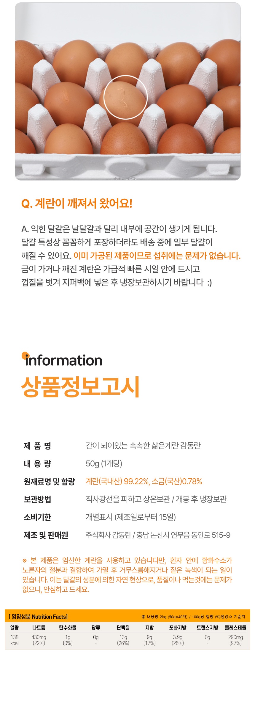 | 생산자 및 소재지(수입품의 경우 생산자, 수입자 및 제조국) | 주식회사 감동란 |