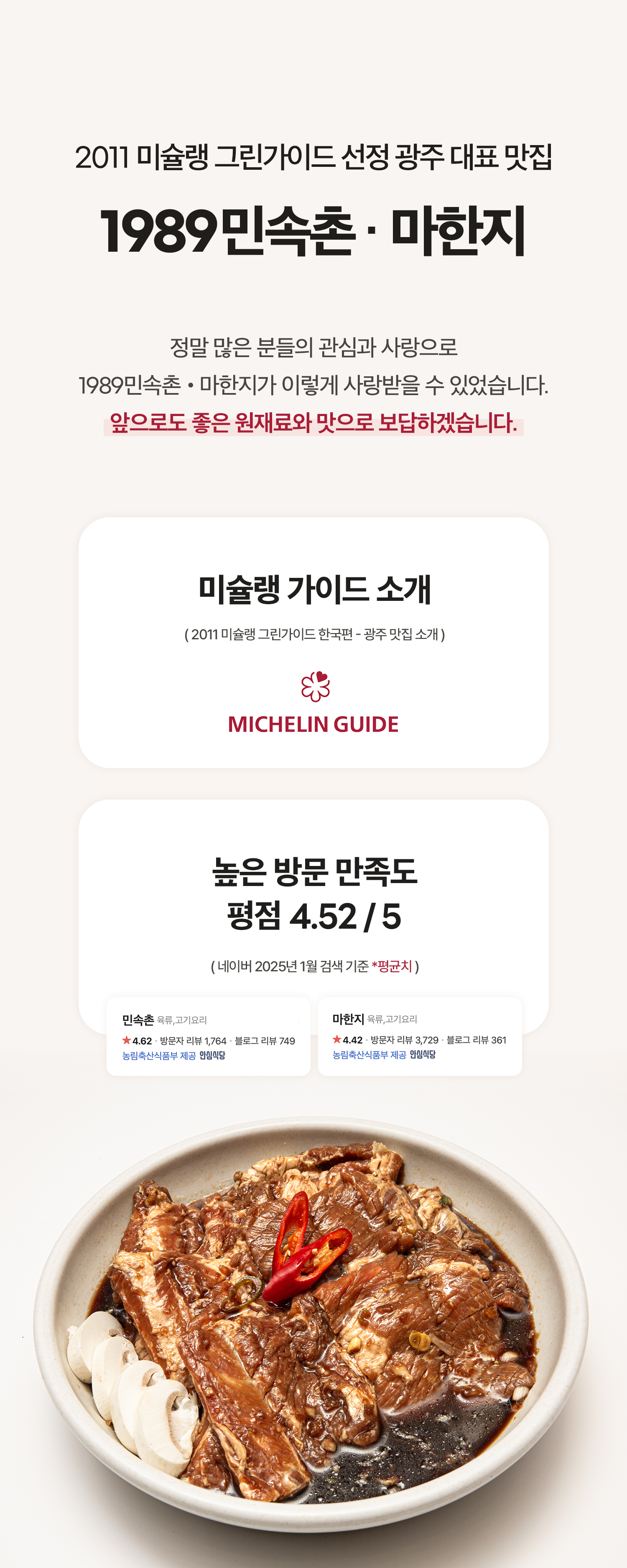 [이벤트] 미슐랭 맛집 마한지 수제양념 돼지갈비 총 1.1kg (0.6kg+0.5kg)