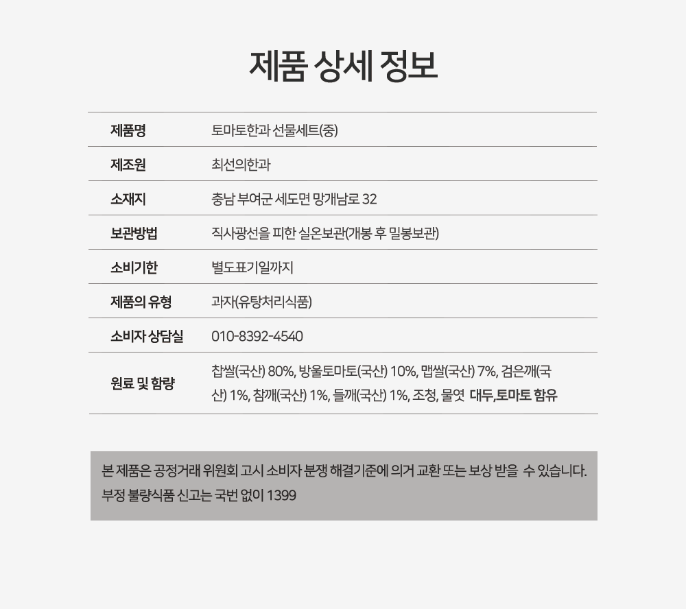 | 제품명 | 수제 토마토한과 세트(중) |