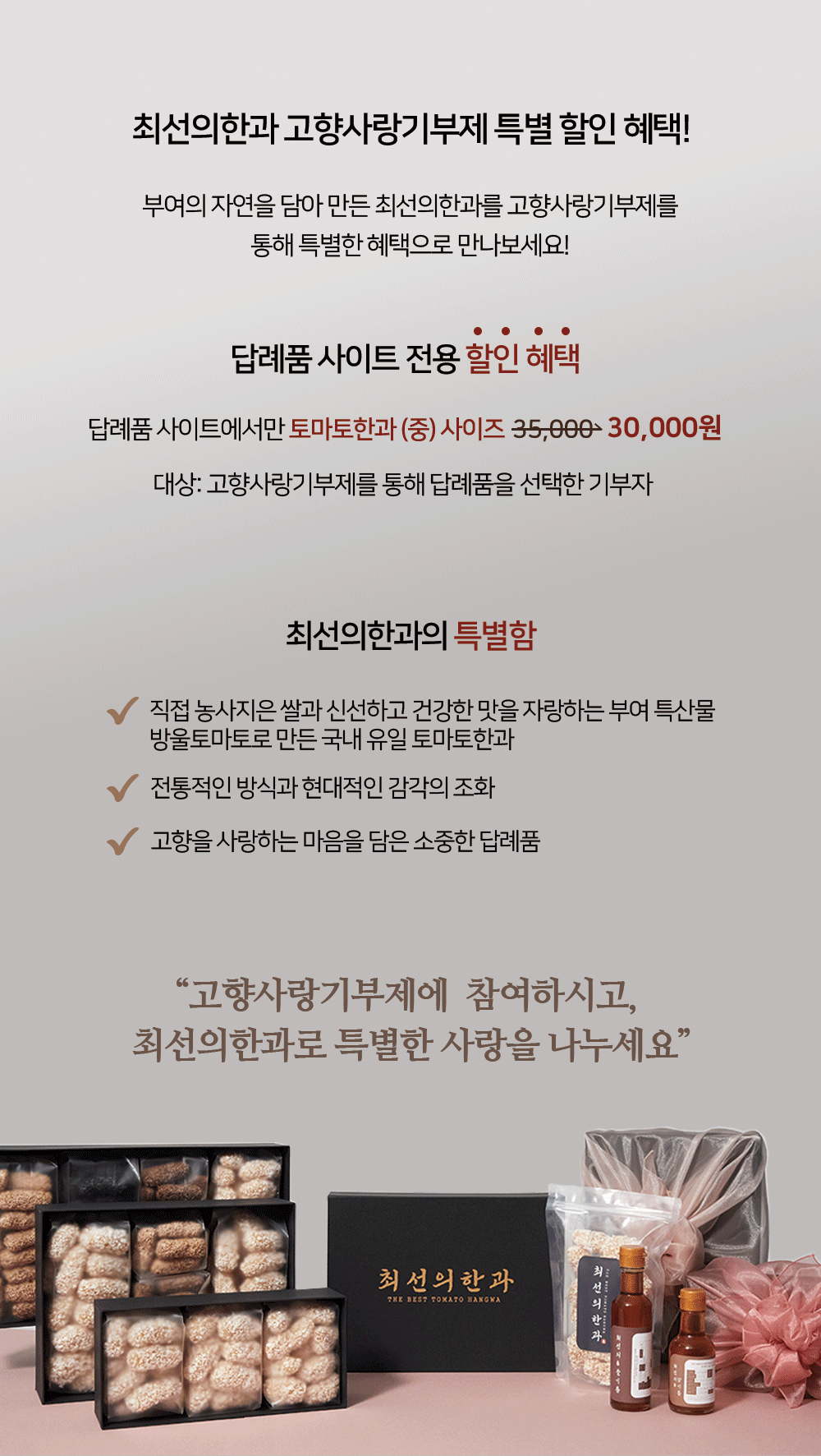 | 답례품 제공자 | 최선의 한과 |