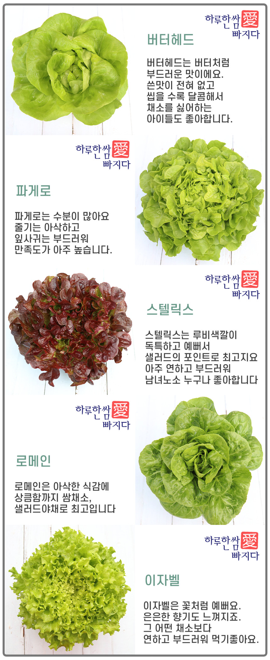 | 상품구성 | 버터헤드,카이피라,크리스피아노,이자벨,로메인,브렌트우드 |