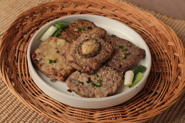 프리미엄 표고 숯불 떡갈비 BEST 해동 후 전자렌지 조리 시 후라이팬 2분 약물에 천천히 포장지 2~3분 데우기 약간 절개 후