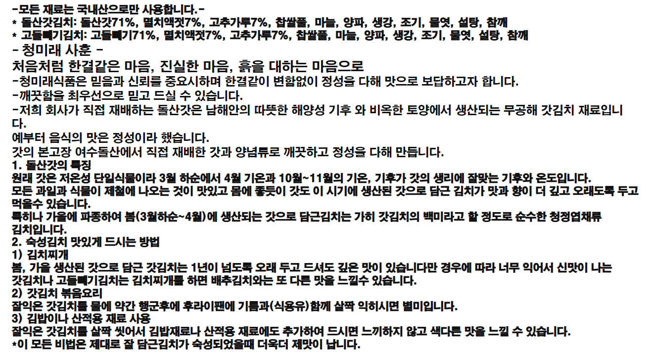 | 제품명 | 전남 여수 돌산갓김치 3kg |