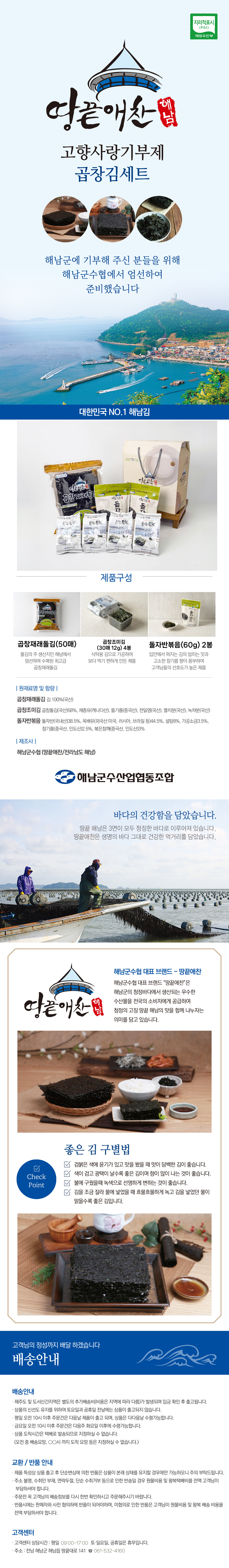 해남 곱창김세트(돌김 50매+조미김 30매*4봉+돌자반 600g*2봉)