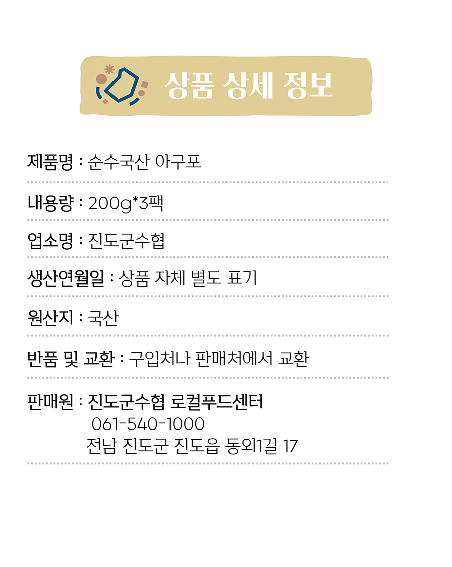 | 품목 또는 명칭 | 순수국산 아구포 200g*3개 |