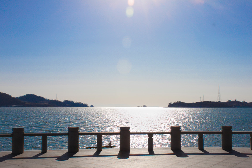 (뽕할머니 동상이 바라보는 신비의 바닷길)