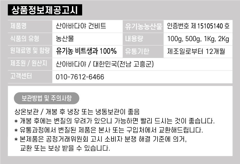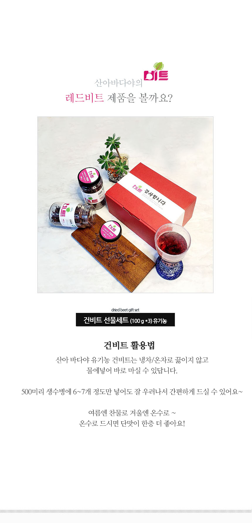 | 품목 또는 명칭 | 국내산 유기농 건비트 선물세트 혈관청소 100g x 3 |