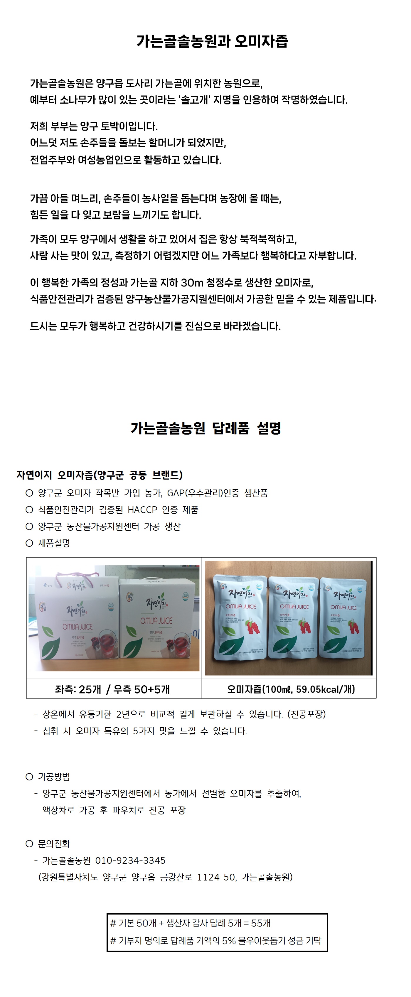 강원도 양구 GAP 오미자즙 5.5L(100ml*55개)