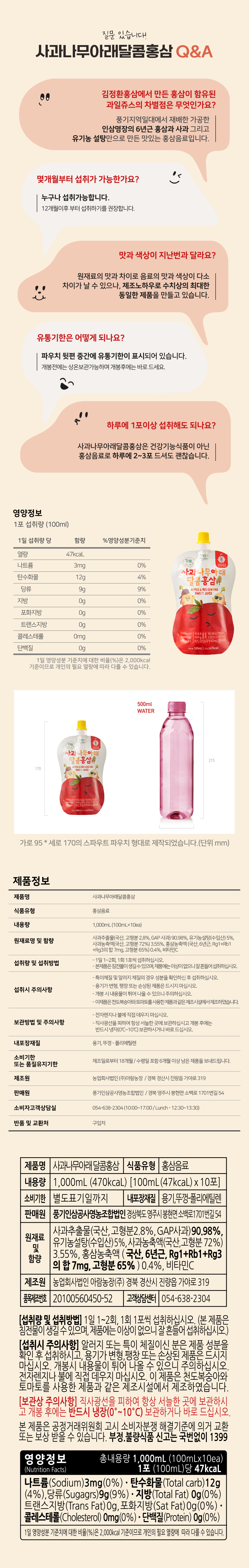 [이벤트] 사과나무아래달콤홍삼 2L(100ml*20개)+김정환홍삼젤리 500g
