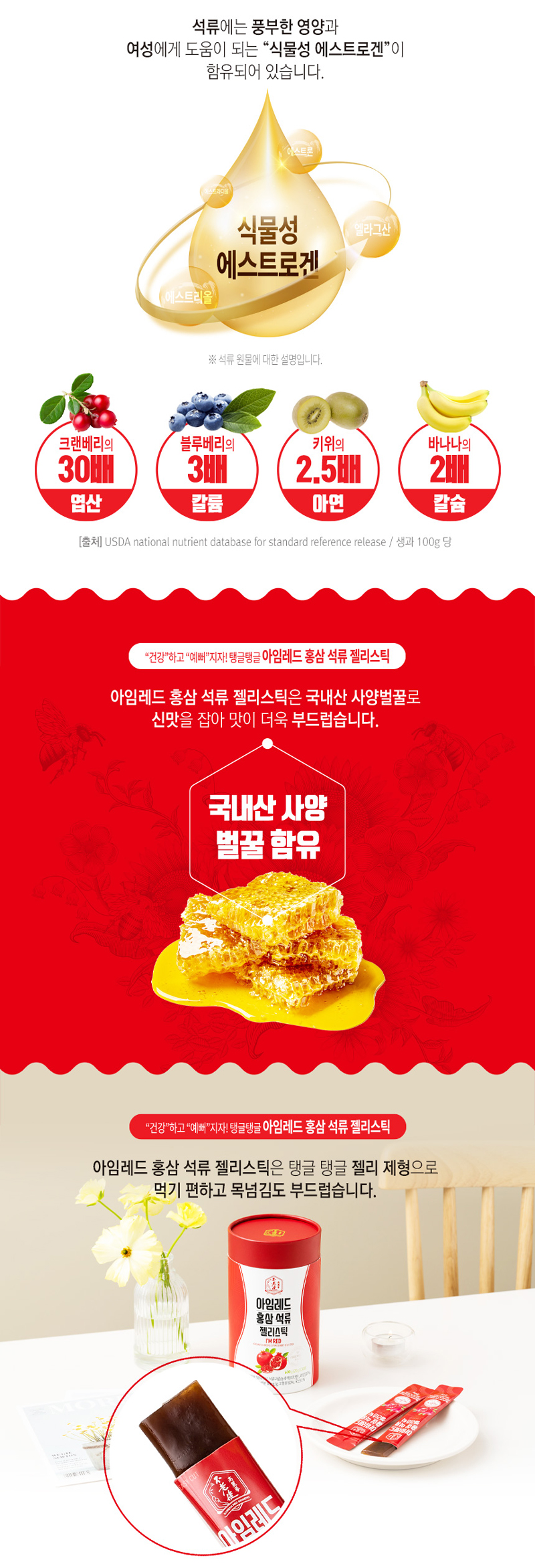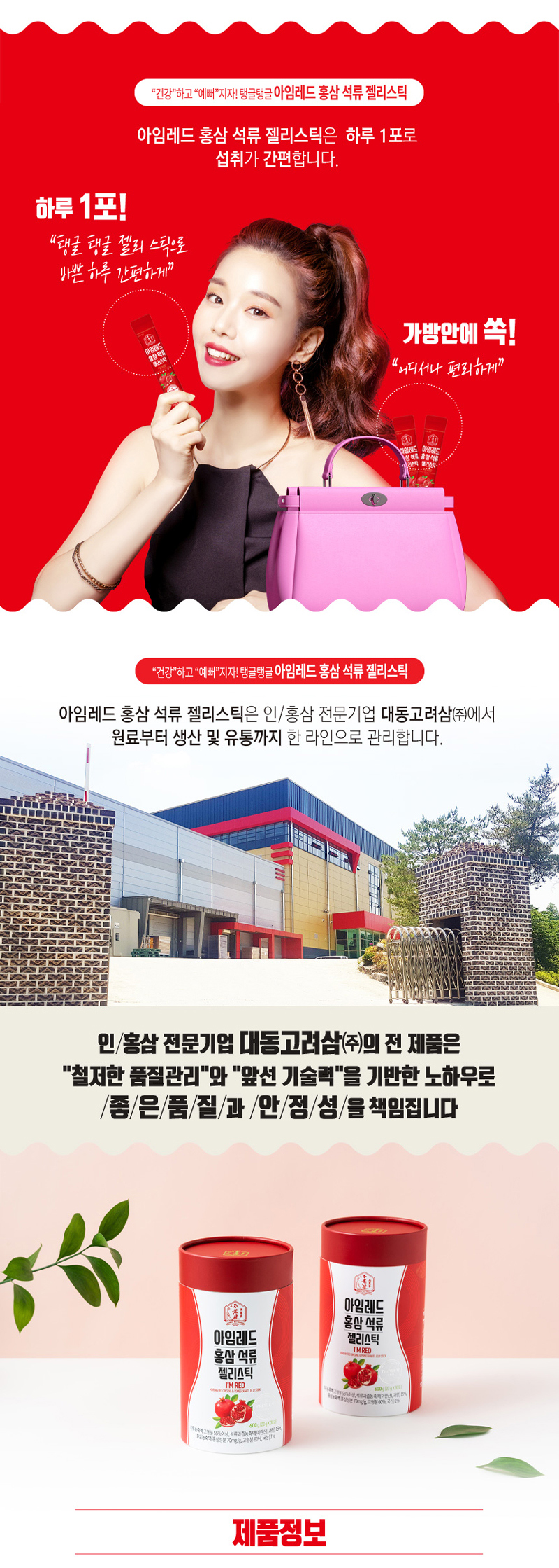 | 제품명 | 홍삼석류 아임레드 젤리 스틱(20g x 30포) |