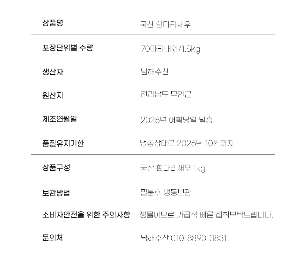 | 상품구성 | 생새우1.5 kg |