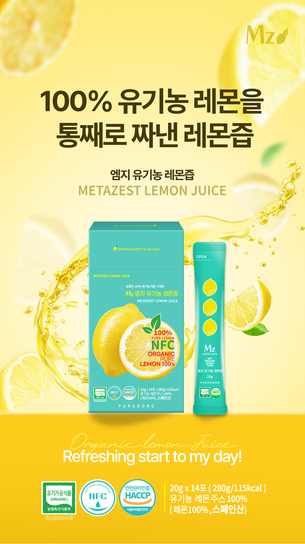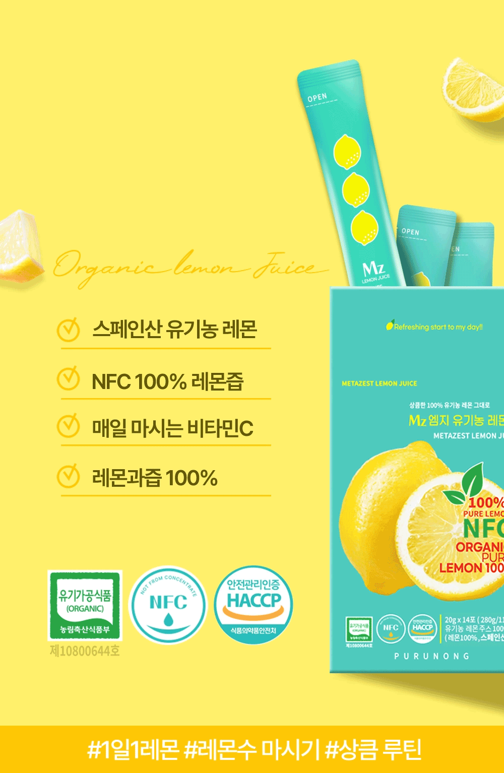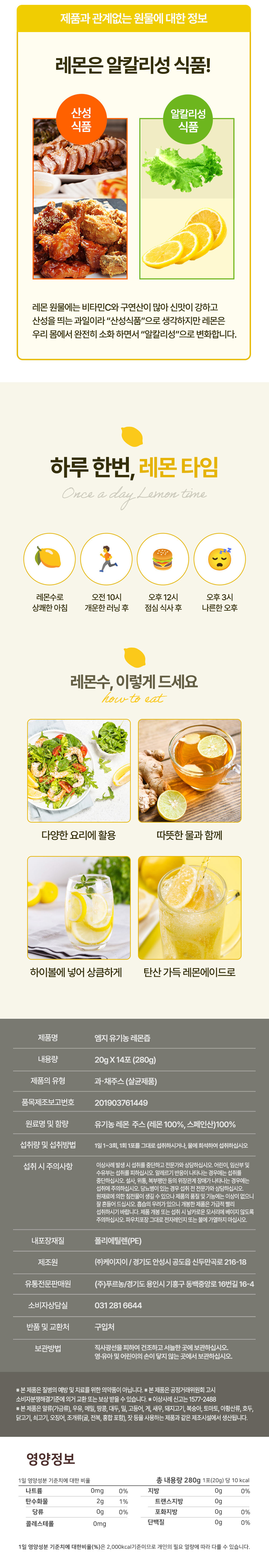 100% 유기농 과즙 무설탕 레몬즙 840g(20g*42포)