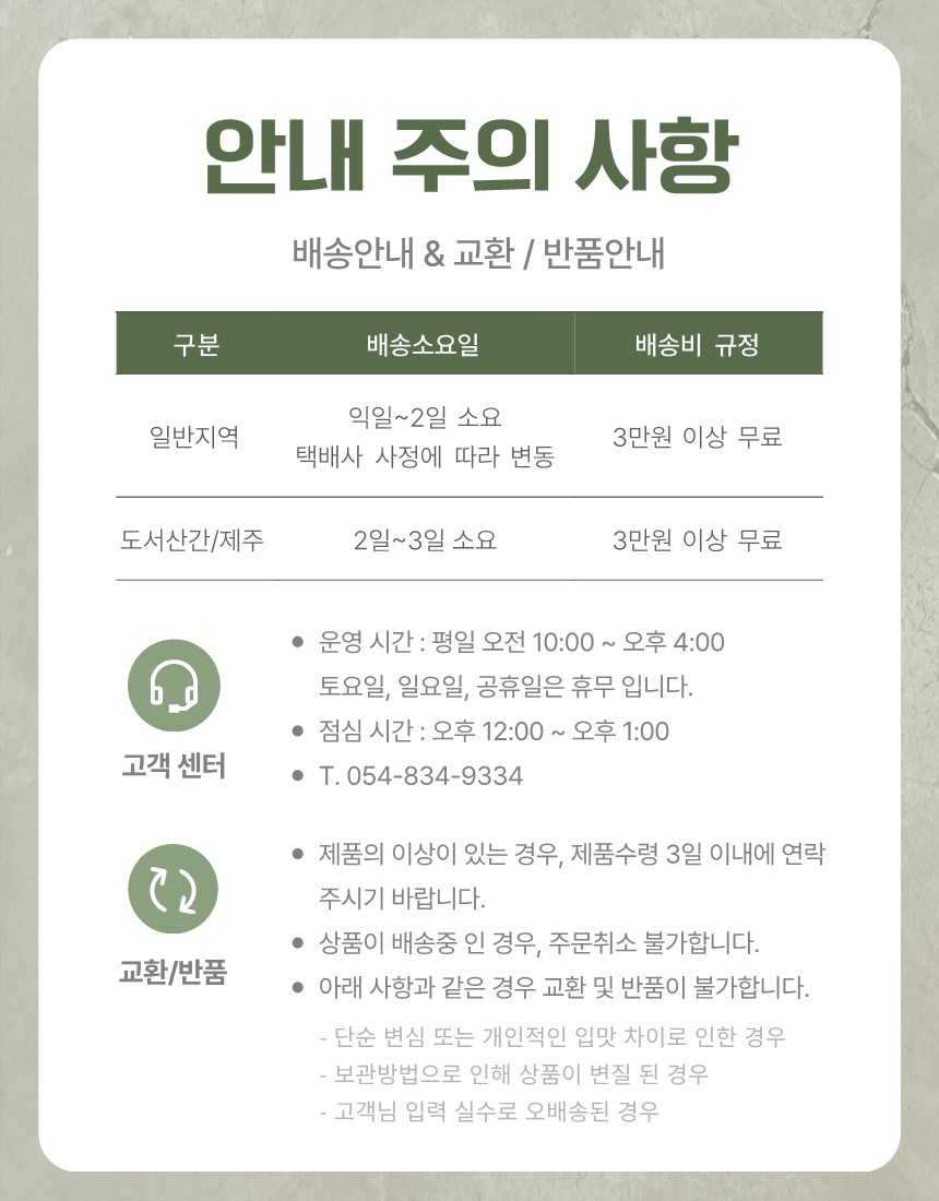 | 소비자상담 관련 전화번호 | 054-834-9334 |