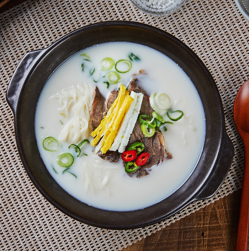 | 원재료명 (「농수산물의 원산지 표시 등에 관한 법률」에 따른 원산지 표시 포함) 및 함량(원재료 함량 표시대상 식품에 한함) | 동강한우 사골 : 16.67% , 동강한우 모듬뼈 : 16.67% , 가용성고형분 57.7% |