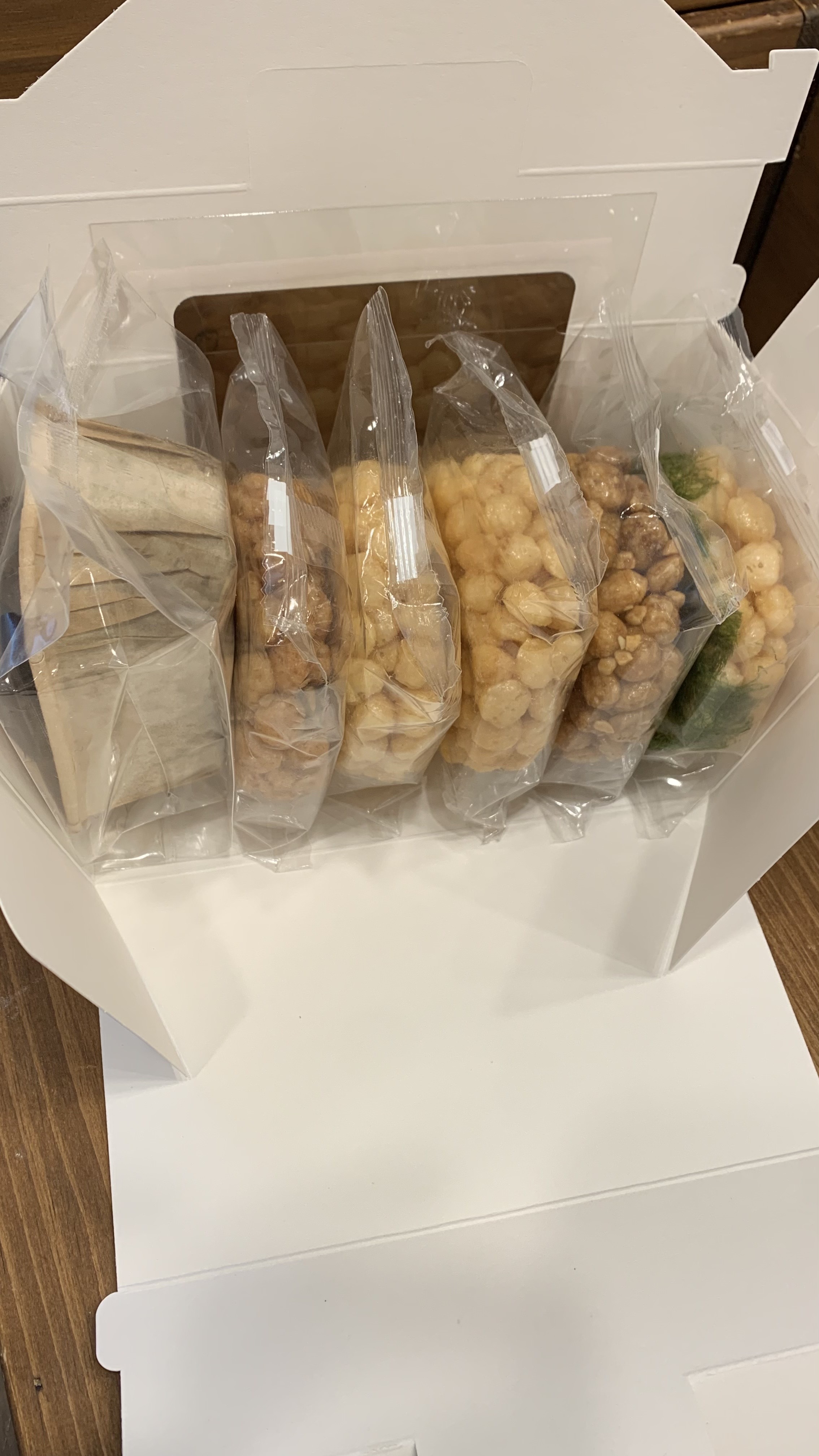 | 원재료명 (「농수산물의 원산지 표시 등에 관한 법률」에 따른 원산지 표시 포함) 및 함량(원재료 함량 표시대상 식품에 한함) | 쌀알알이: 국산(멥쌀 43%, 찹쌀 30%, 보리 8%) 채종유: 캐나다산 천일염: 국산 감태: 태안 해바라기씨: 중국,불가리아 호박씨: 중국 땅콩: 중국 |
