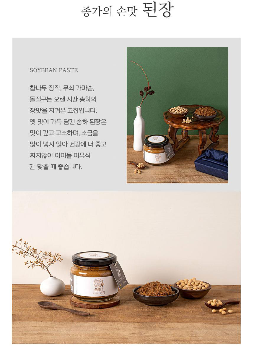 | 원재료명 (「농수산물의 원산지 표시 등에 관한 법률」에 따른 원산지 표시 포함) 및 함량(원재료 함량 표시대상 식품에 한함) | 대두90%(국내산), 천일염10%(국내산) |