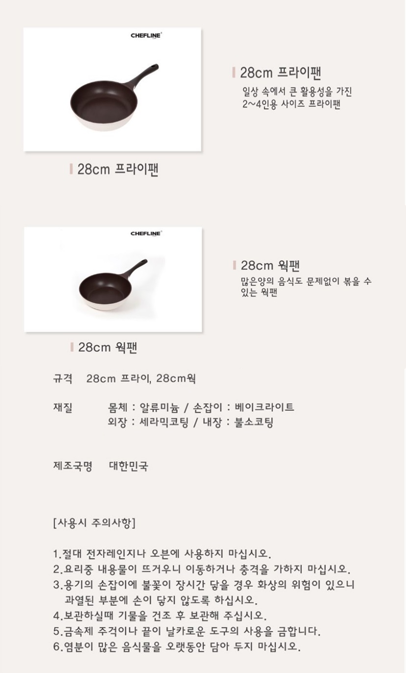 | 품명 및 모델명 | 셰프라인 인덕션주물팬2종세트 [28프라이팬+28궁중팬] |