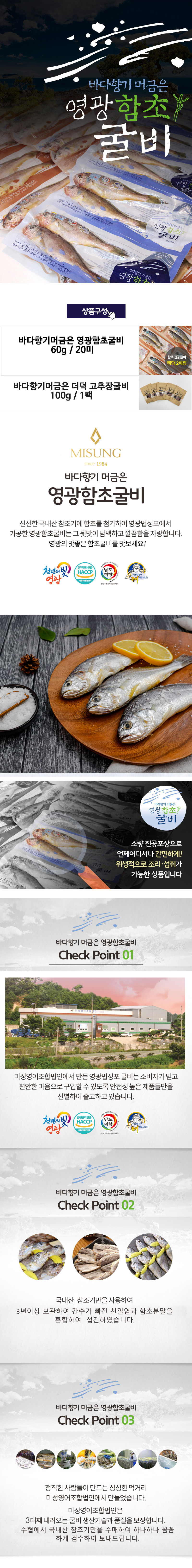 | 원산지 | 함초굴비 : 참조기(국산), 천일염(국산), 함초분말(국산) 더덕고추장굴비 : 굴비(국산), 고추장(국내산), 더덕분말(국산), 양념(국내산) |