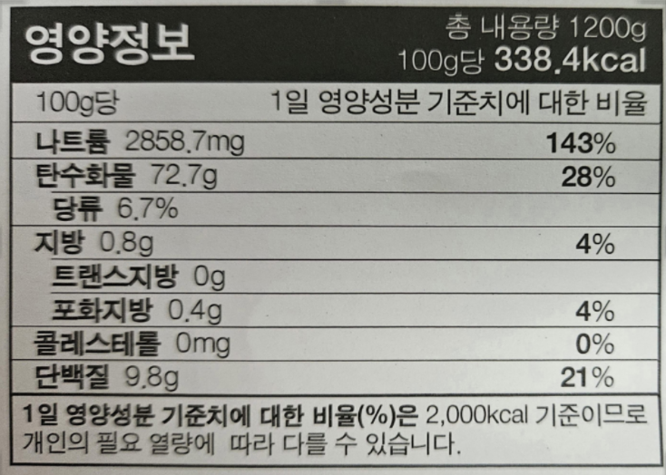 | 원재료명 및 함량 | 밀가루97% 소금물3% |