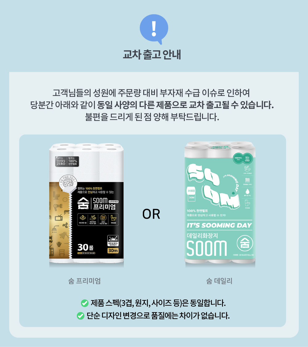 [이벤트] 100% 천연펄프 숨 프리미엄 두루마리 화장지 90롤(30롤*2팩+30롤)