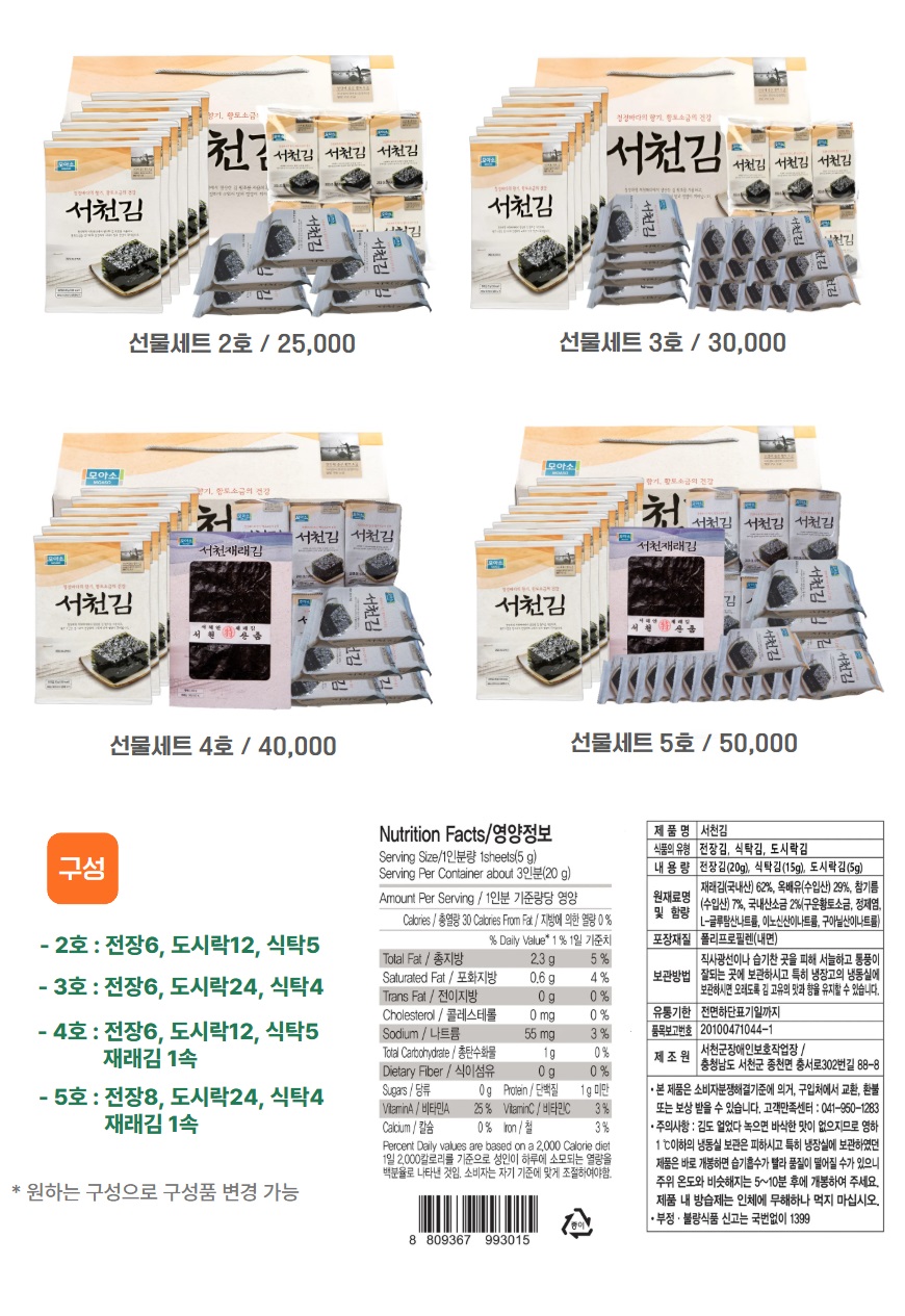 [이벤트]서천김 선물세트 3호 380g(도시락120g+식탁60g+전장120g+80g 추가)