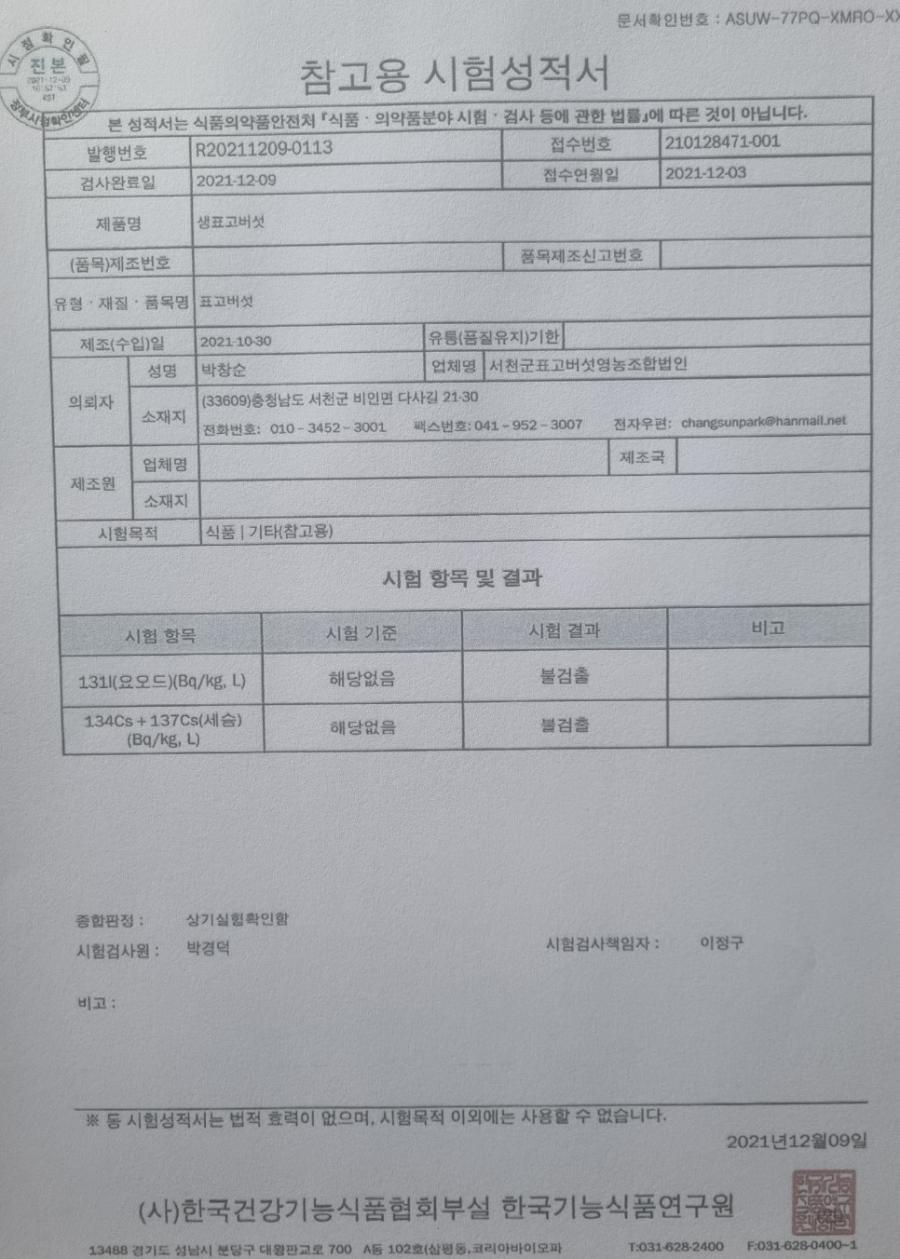포장단위별 내용물의 용량(중량), 수량, 크기 건표고버섯(통버섯100g 슬라이스 100g 깎뚝썰기100g)