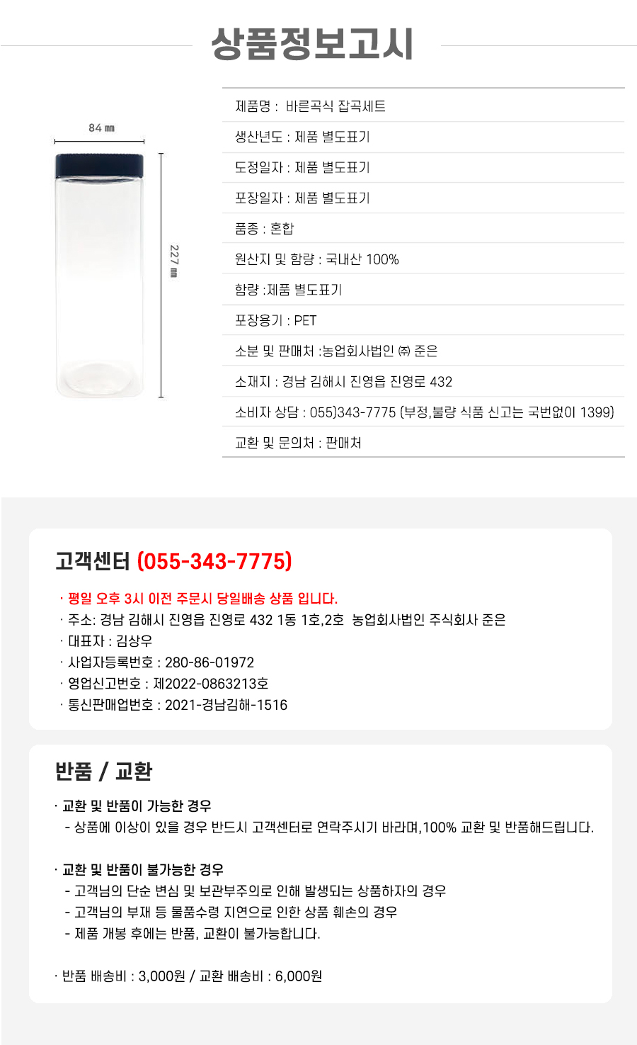 | 생산자/수입자 | 농업회사법인주식회사 준은 |