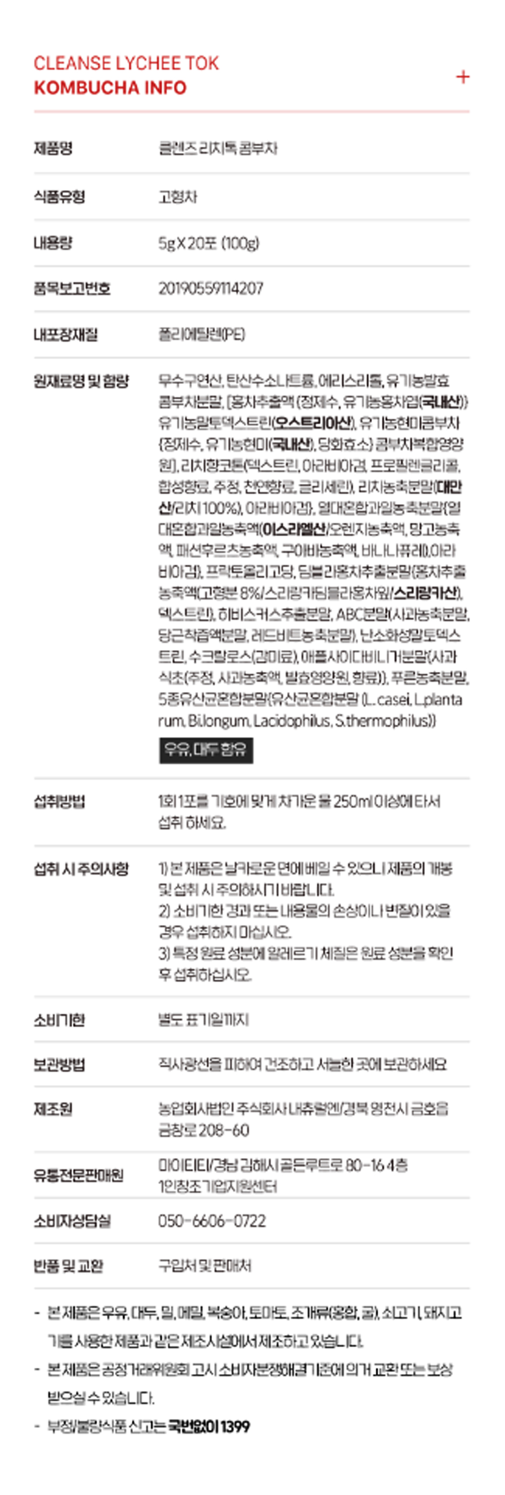 클렌즈 리치톡 콤부차 300g(5g*20스틱*3박스)