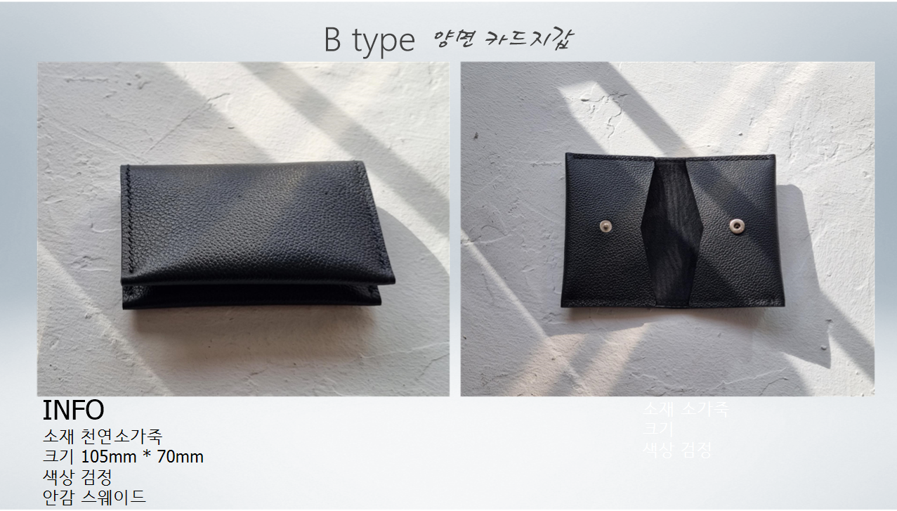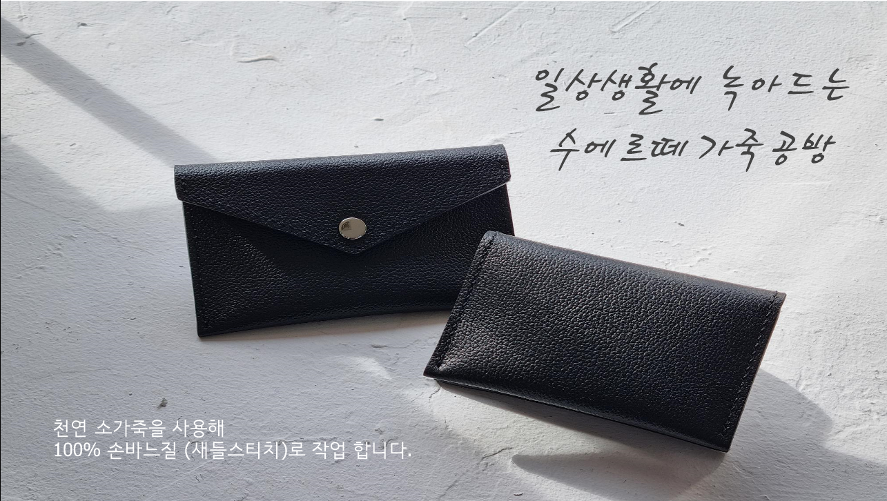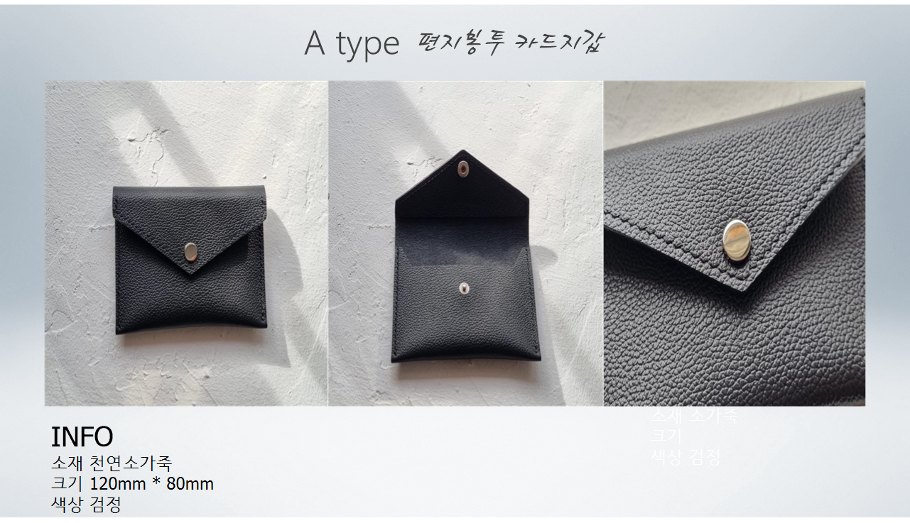 100% 손바느질 가죽 카드지갑 이니셜각인(편지봉투, 양면 카드지갑 중 택1)
